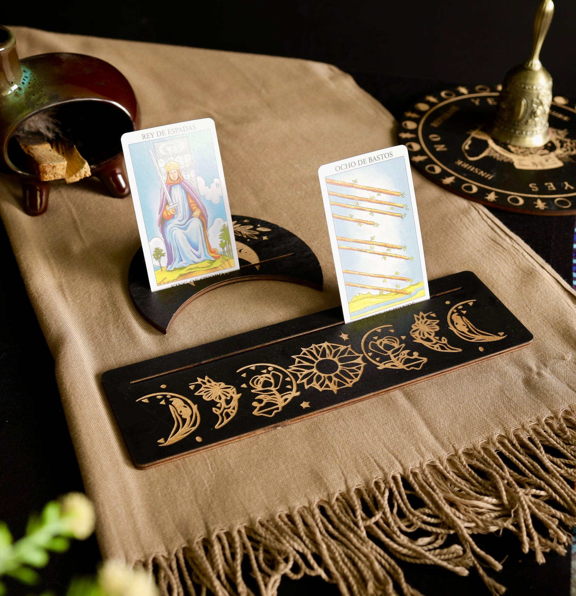 Más que un soporte, es una herramienta mística de conexión y belleza, perfecta para realzar el mensaje de cada carta.
