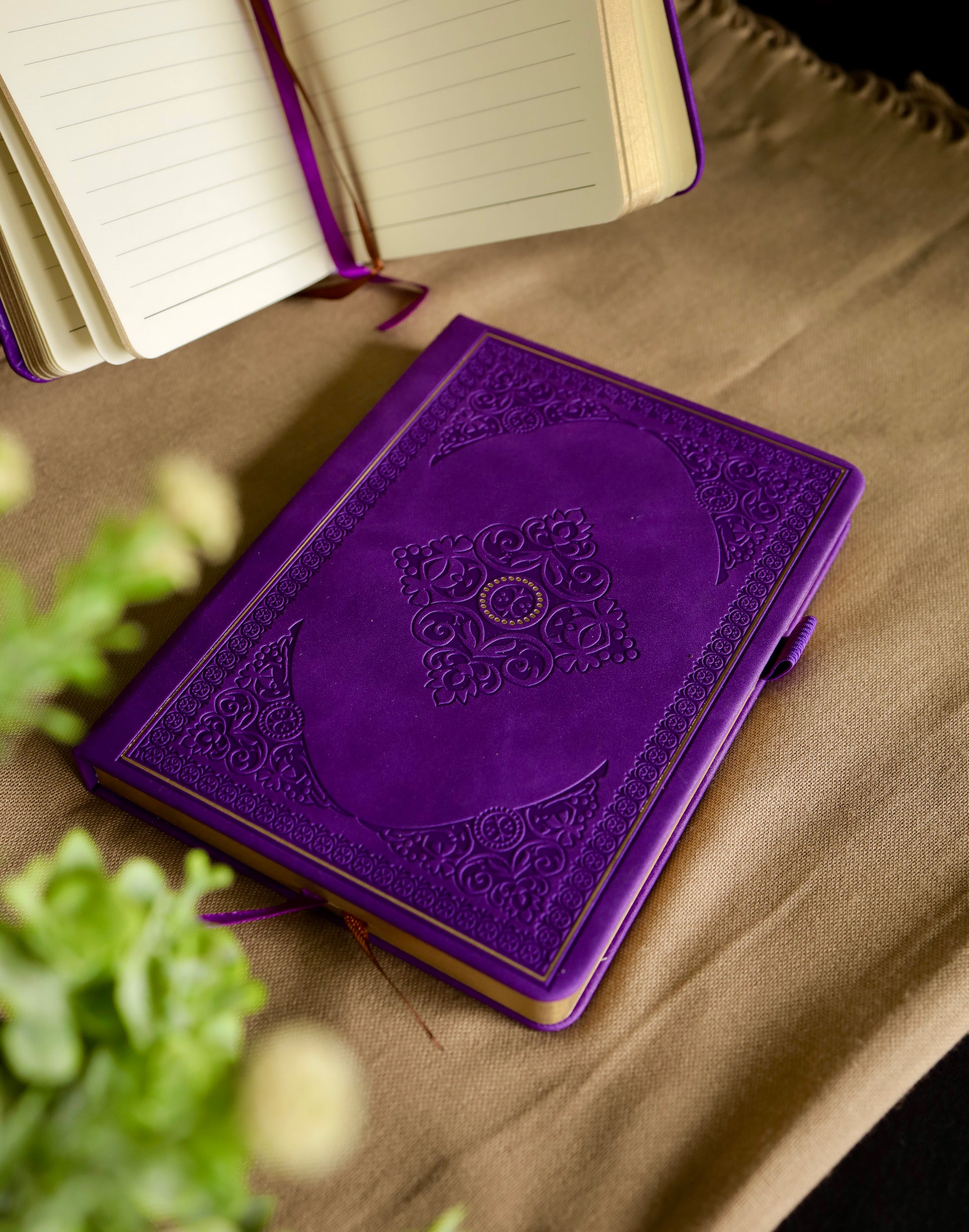 El Cuaderno de Manifestación Mística está inspirado en la energía violeta de la transformación espiritual y la intuición. Su tapa con grabados y detalles dorados evoca la conexión con lo divino, invitándote a escribir desde tu poder interior y tu sabiduría ancestral.
