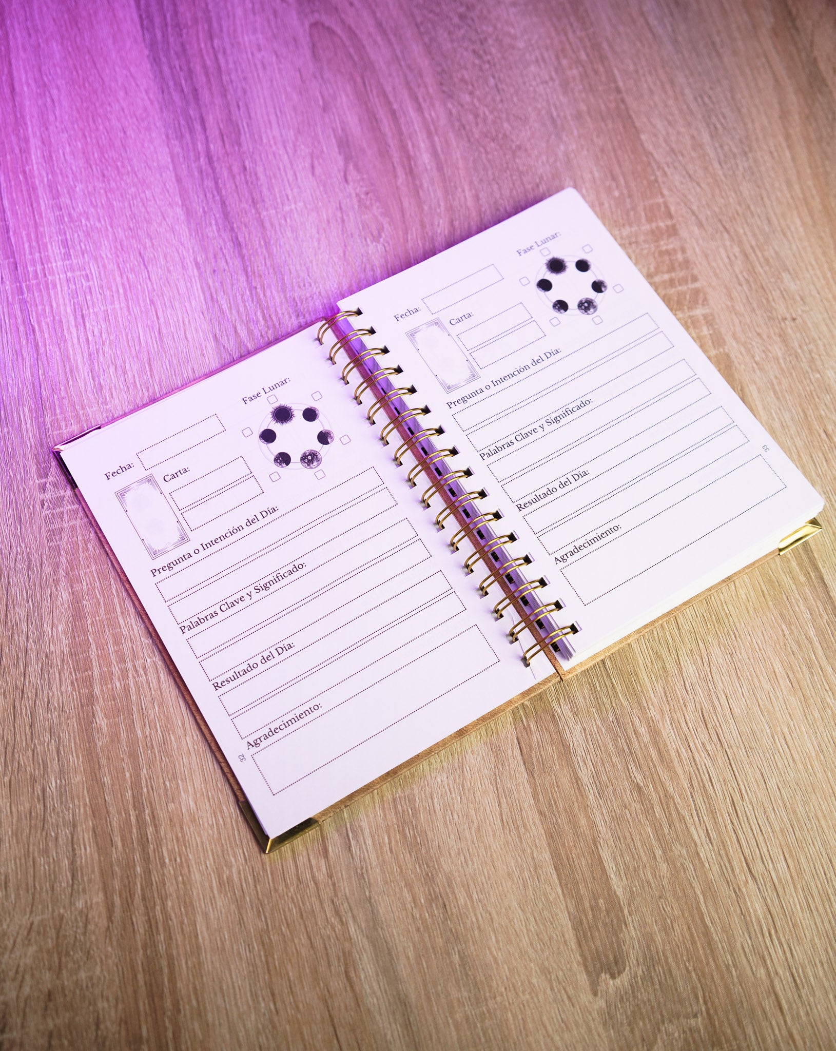 Cada página te invita a registrar tus lecturas diarias, anotar tus reflexiones personales y observar cómo evoluciona tu energía a lo largo de las fases lunares.