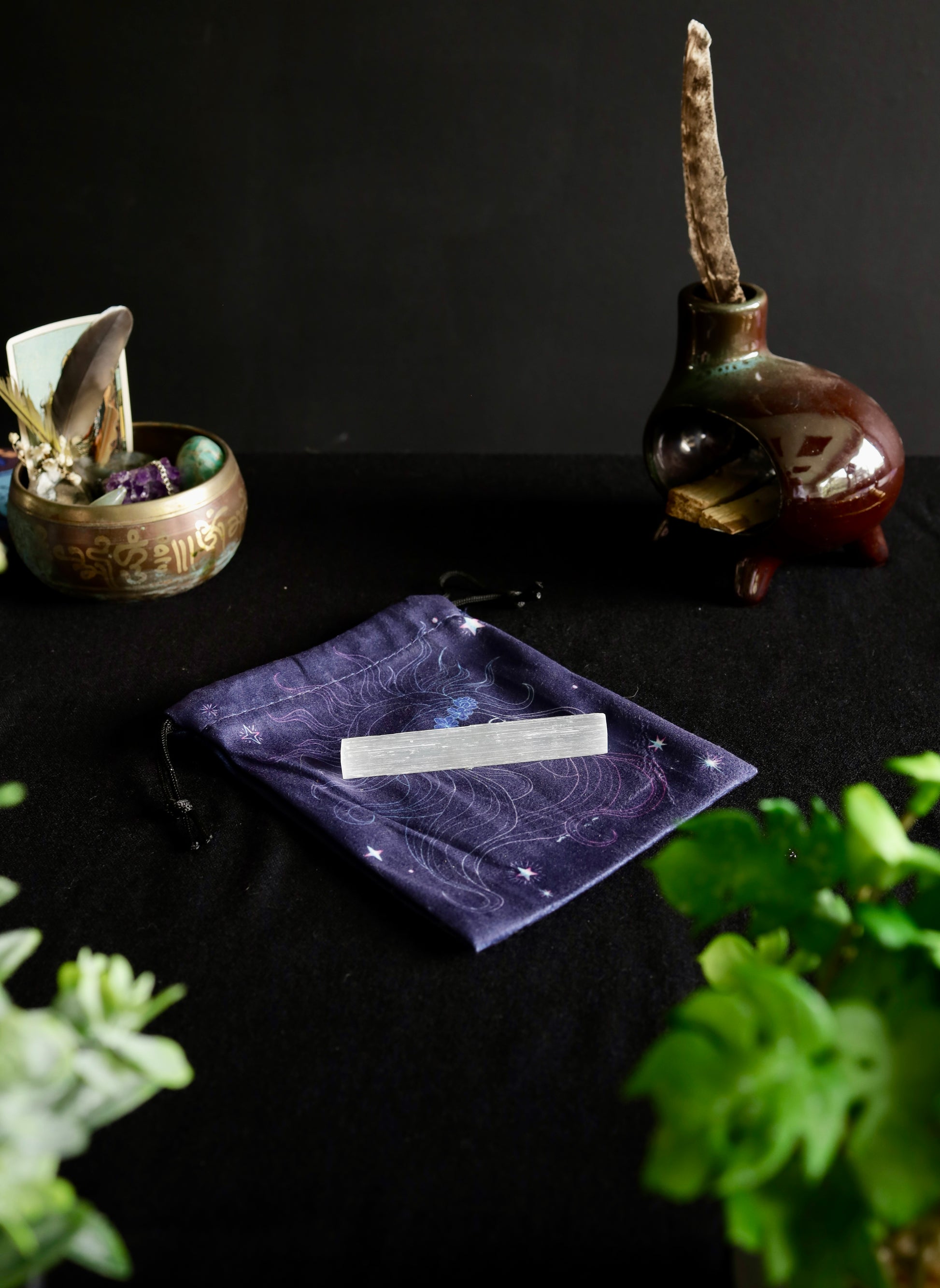 - Selenita (piedra), para mantener las cartas limpias, cargadas y listas para utilizar en cualquier momento
