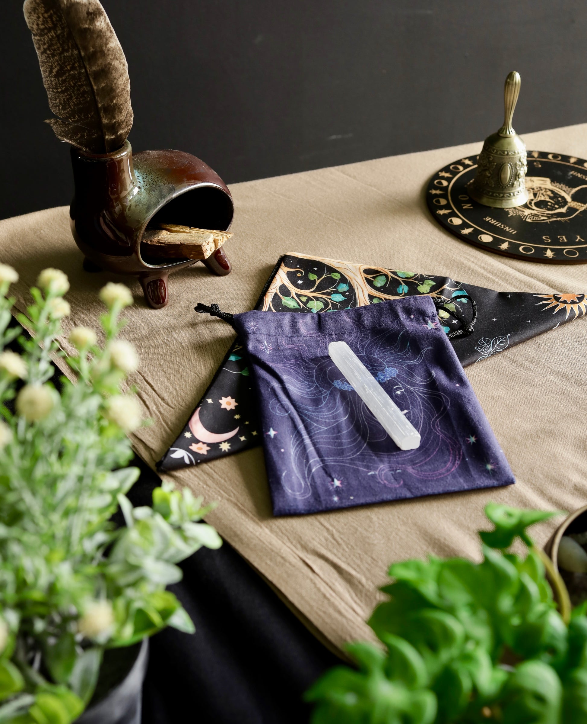 - Selenita (piedra), para mantener las cartas limpias, cargadas y listas para utilizar en cualquier momento